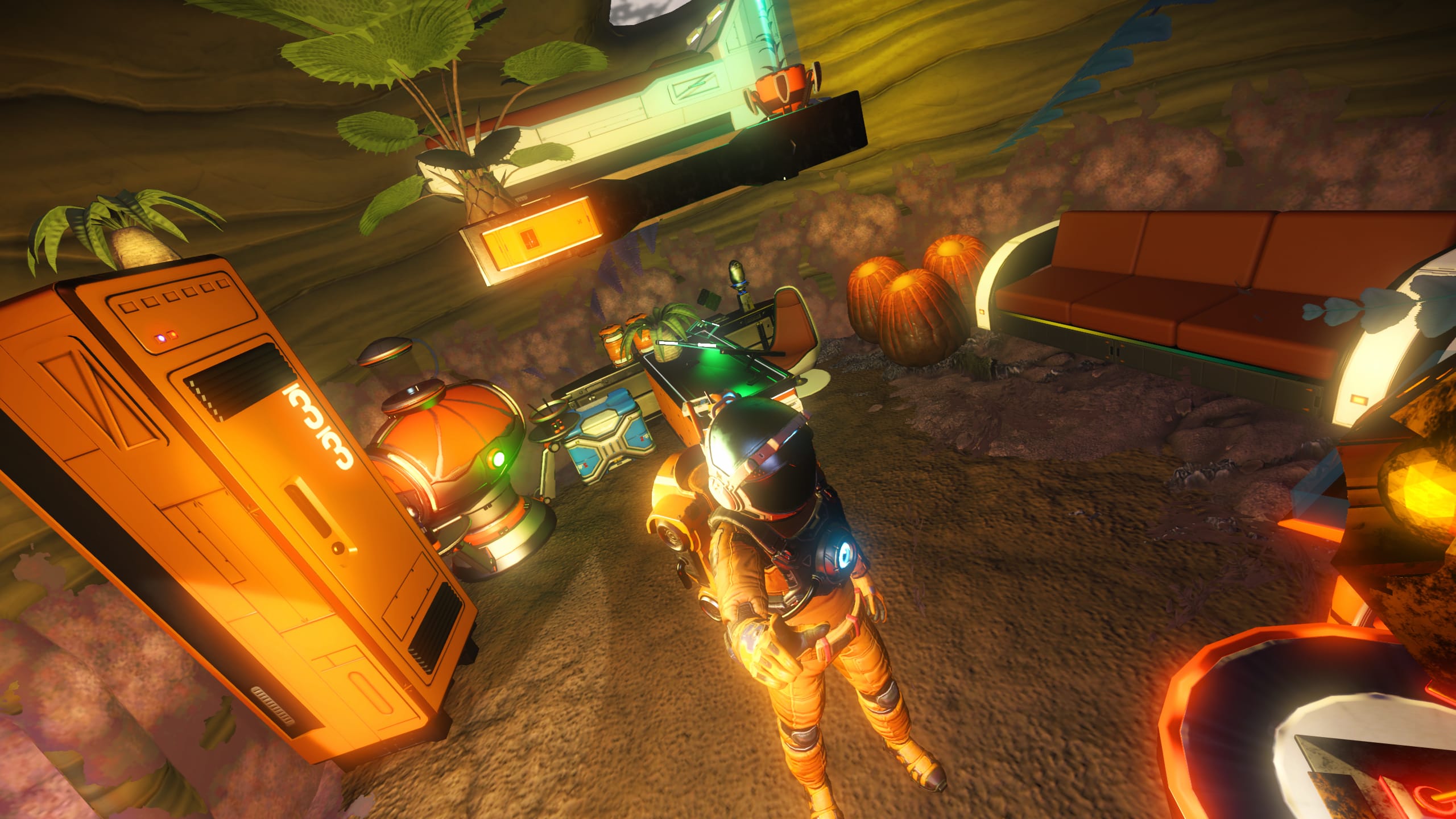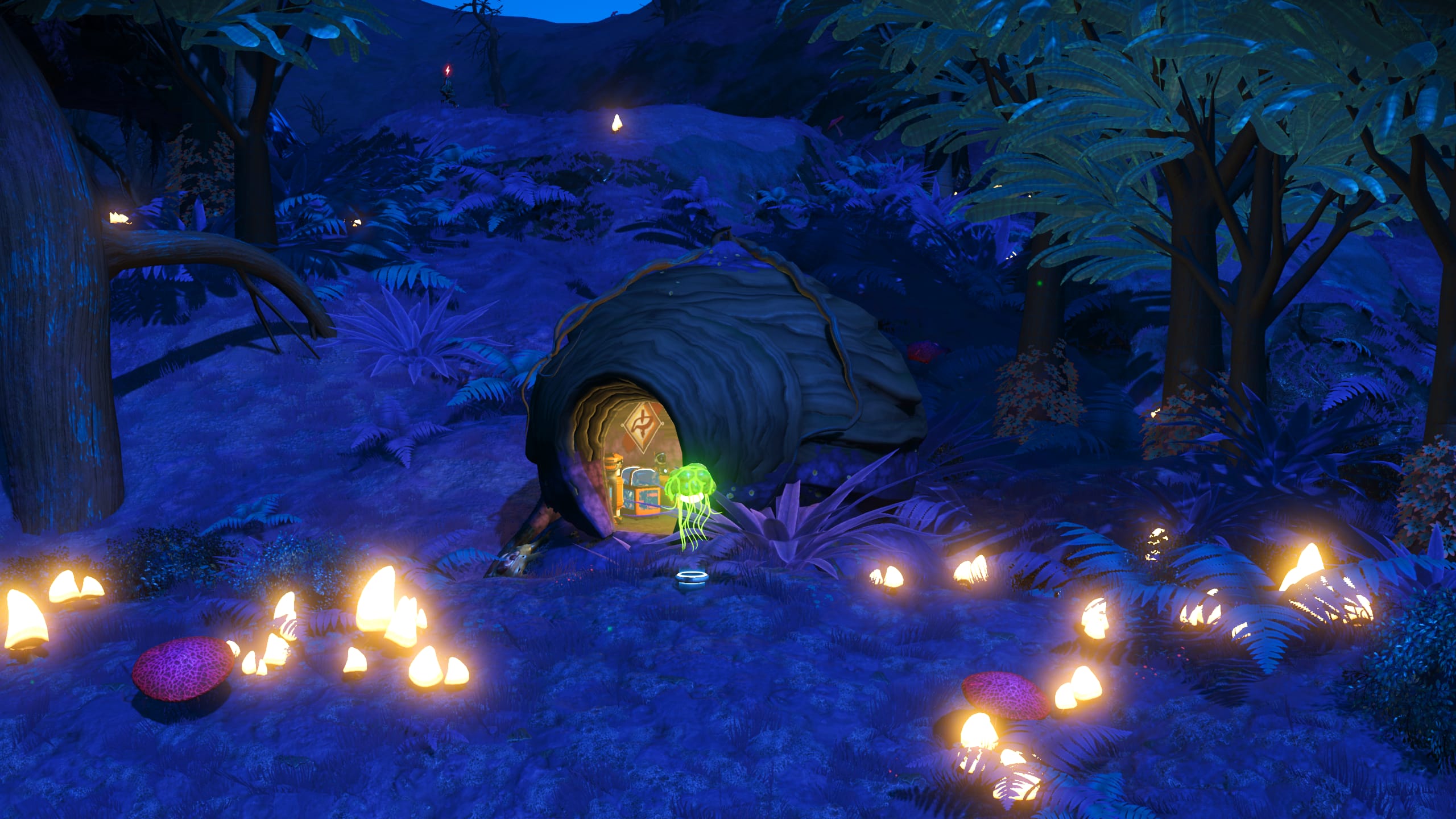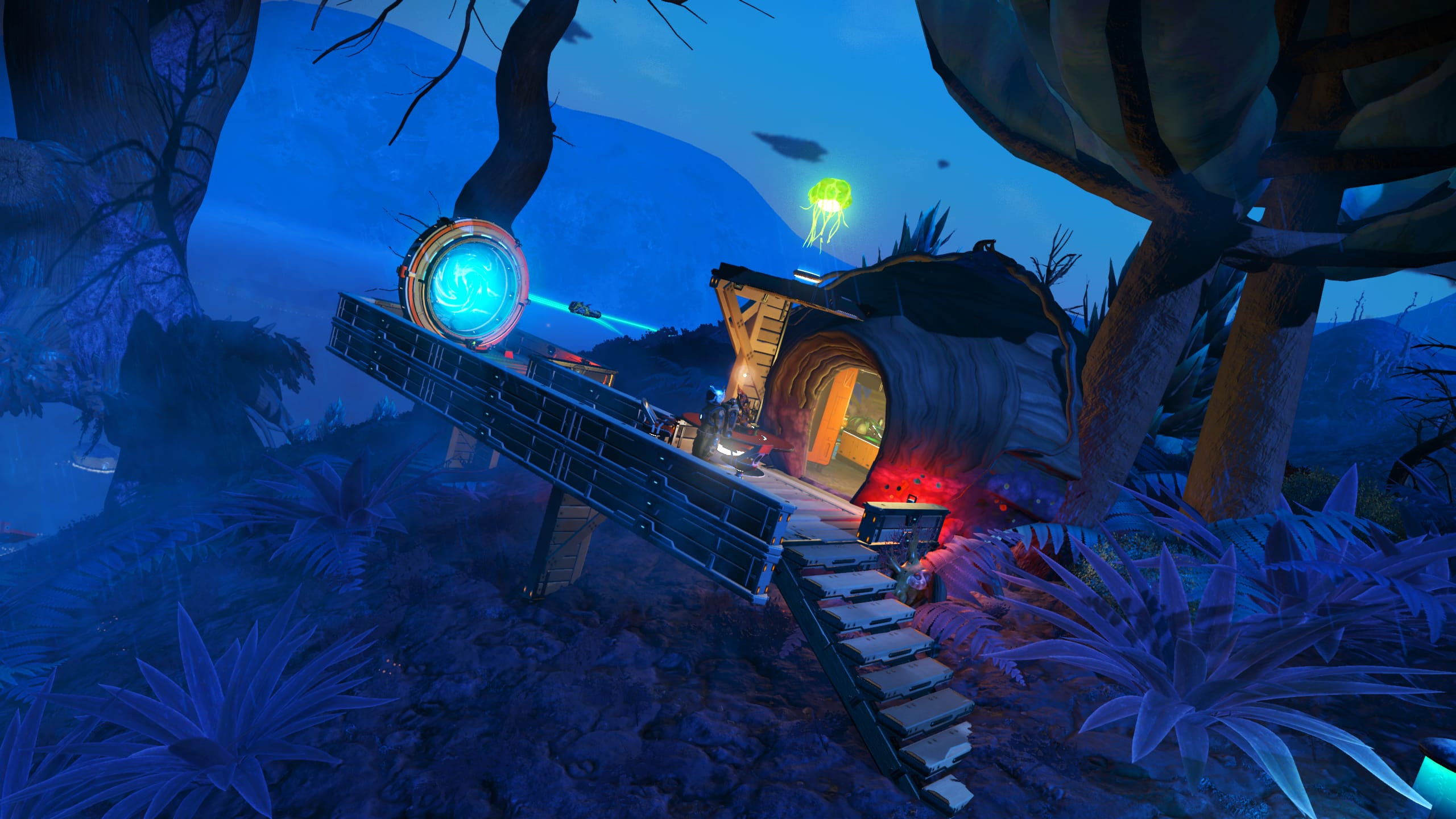 Aside from the aforementioned hellish volcano worlds, another new type of world is a swampy sort marked by dramatically rooted trees, glowing fungi, and a sort of organic pod dwelling that players have taken to calling “Yoda huts,” given their similarity to the well known Degobah homestead of the aged Jedi master. Not long after installing the update, I encountered my first world of this sort, but I didn’t immediately notice these little organic huts situated at the base of certain trees. But, as soon as I came across my first, the possibilities got me quite excited given my fondness for “tiny home” bases.
