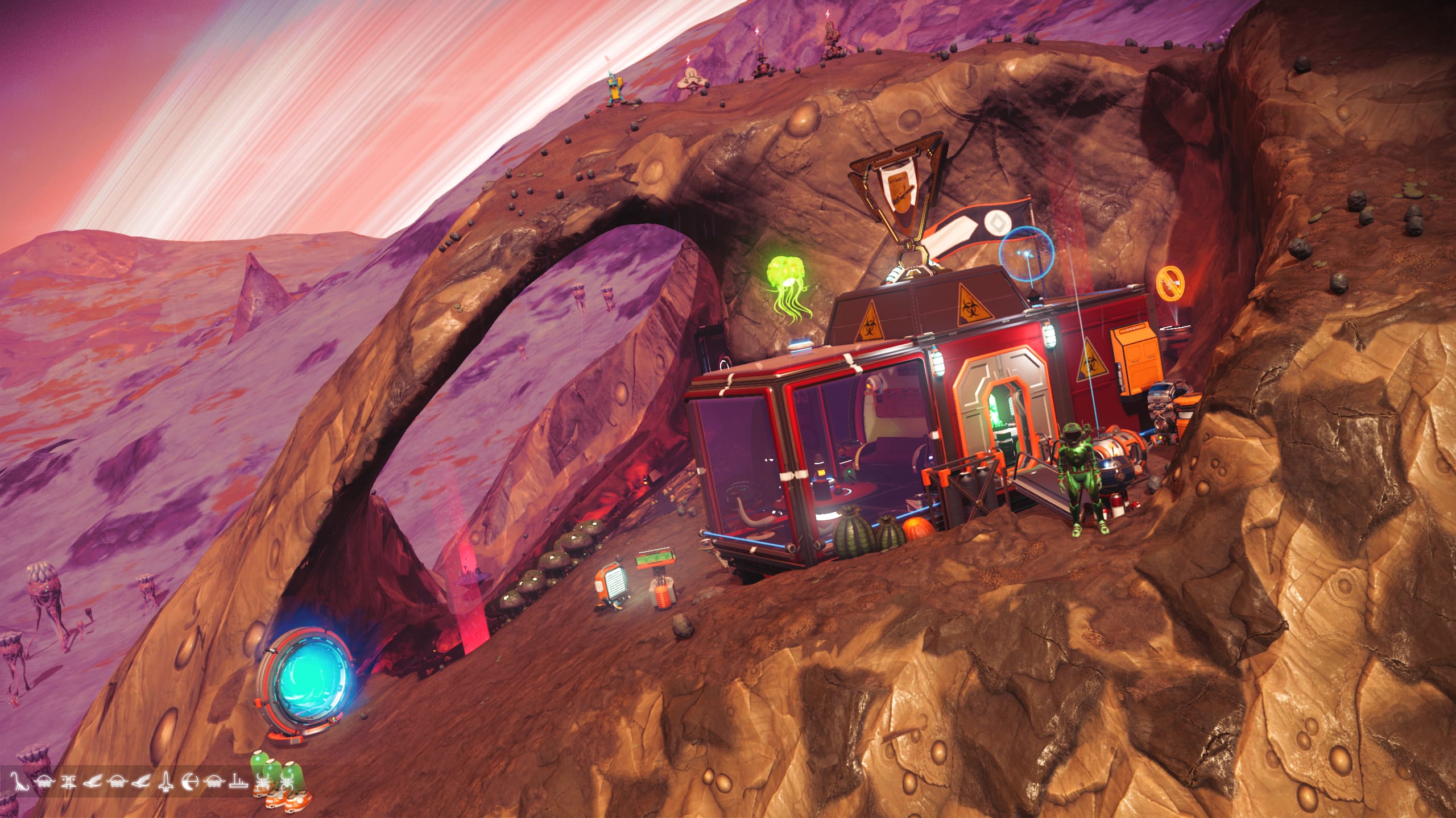 Wanting to share some of my experiences during Expedition #1: The Pioneers, I recorded quite a few video clips and screenshots here and there over the past two months and have assembled them here for those interested. (Many more images of my travels within the game, ranging back to 2016, can be seen in my gallery.) The embedded video first presents glimpses of my progress through the Expedition, encountering many bases and other players along the way (as well as a rather unexpected encounter in space that had a real “open the pod bay doors, Hal” vibe to it…), after which a short walk-through of my own aforementioned bases is shown [ bookmark to 12m 20s in ]. I hope they provide an interesting glimpse of just how busy things have been out there for players that sat this one out, or a look at perhaps a different approach to “getting the gold” for those who were there along with me on this first Expedition.