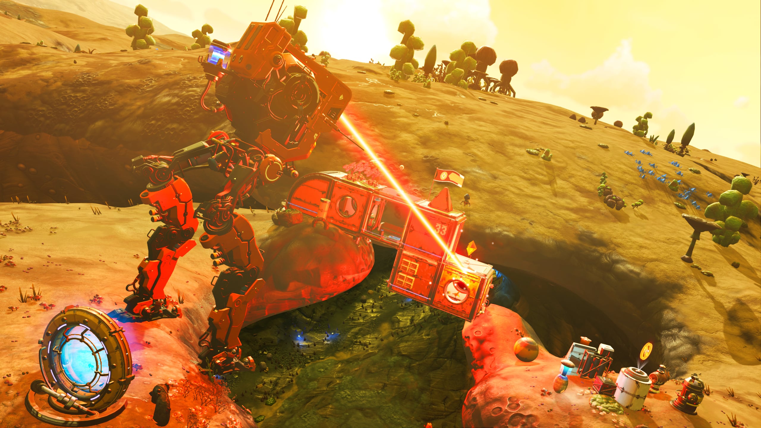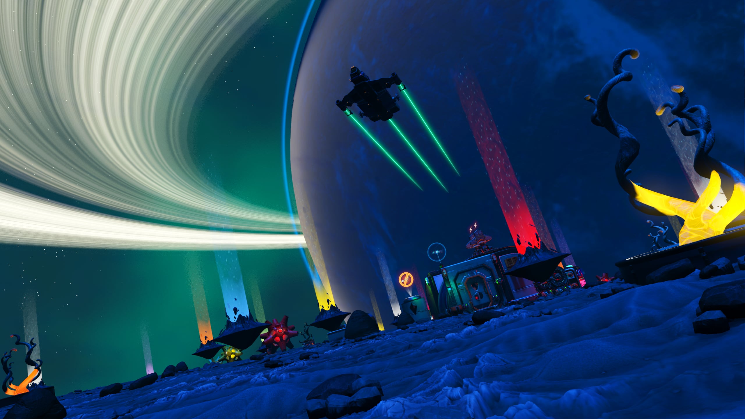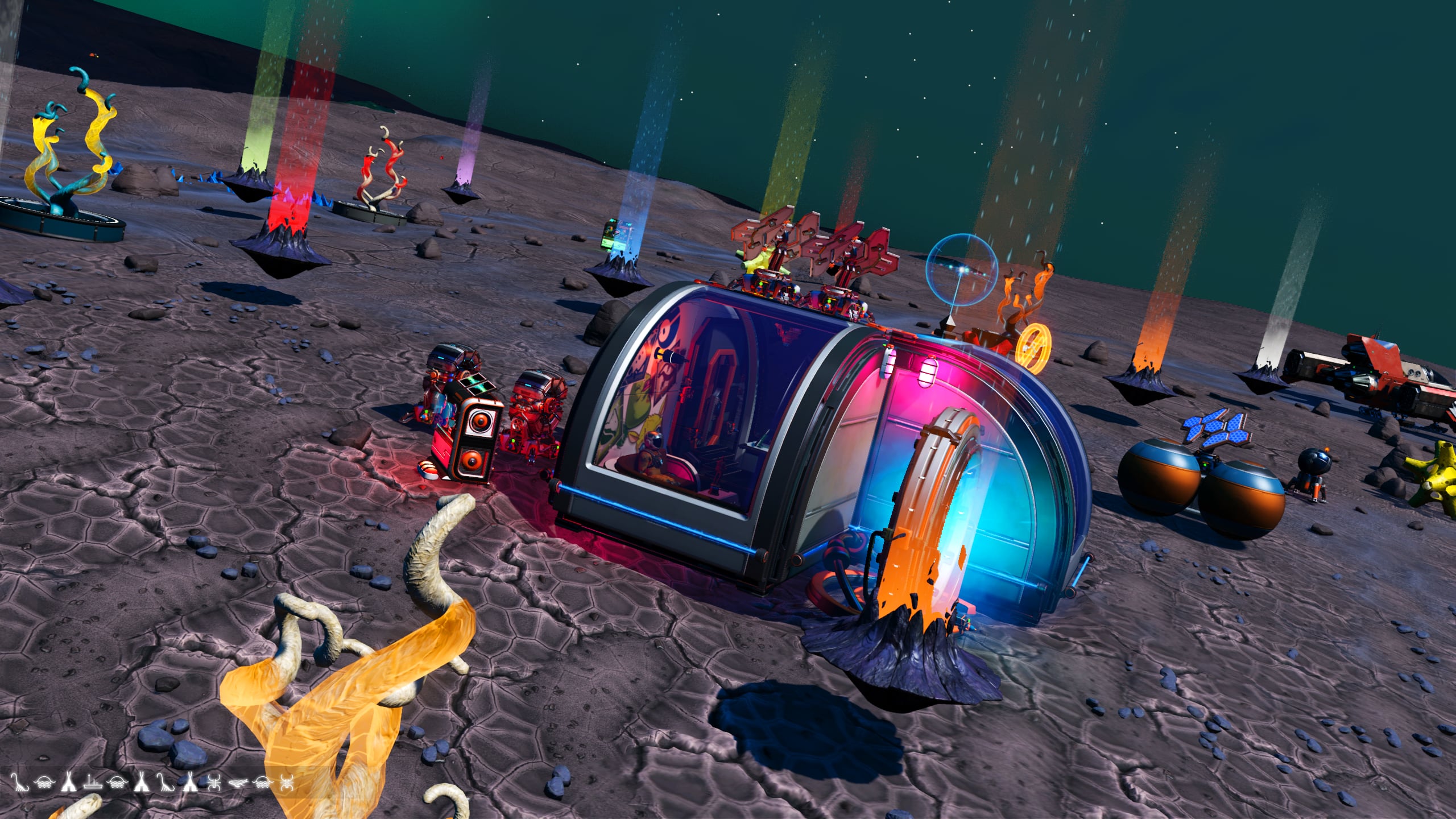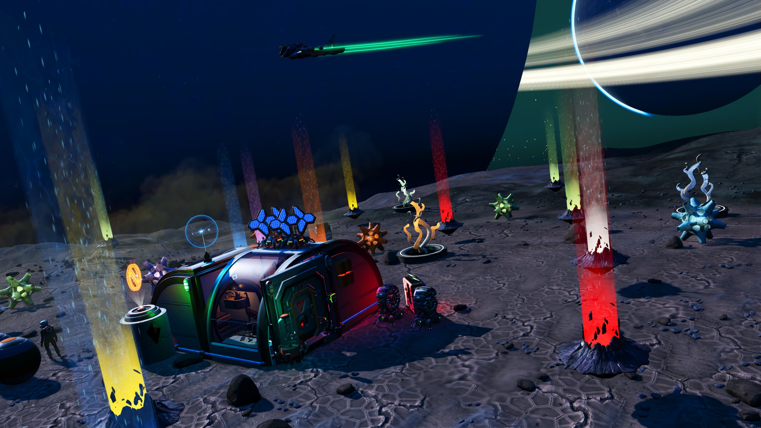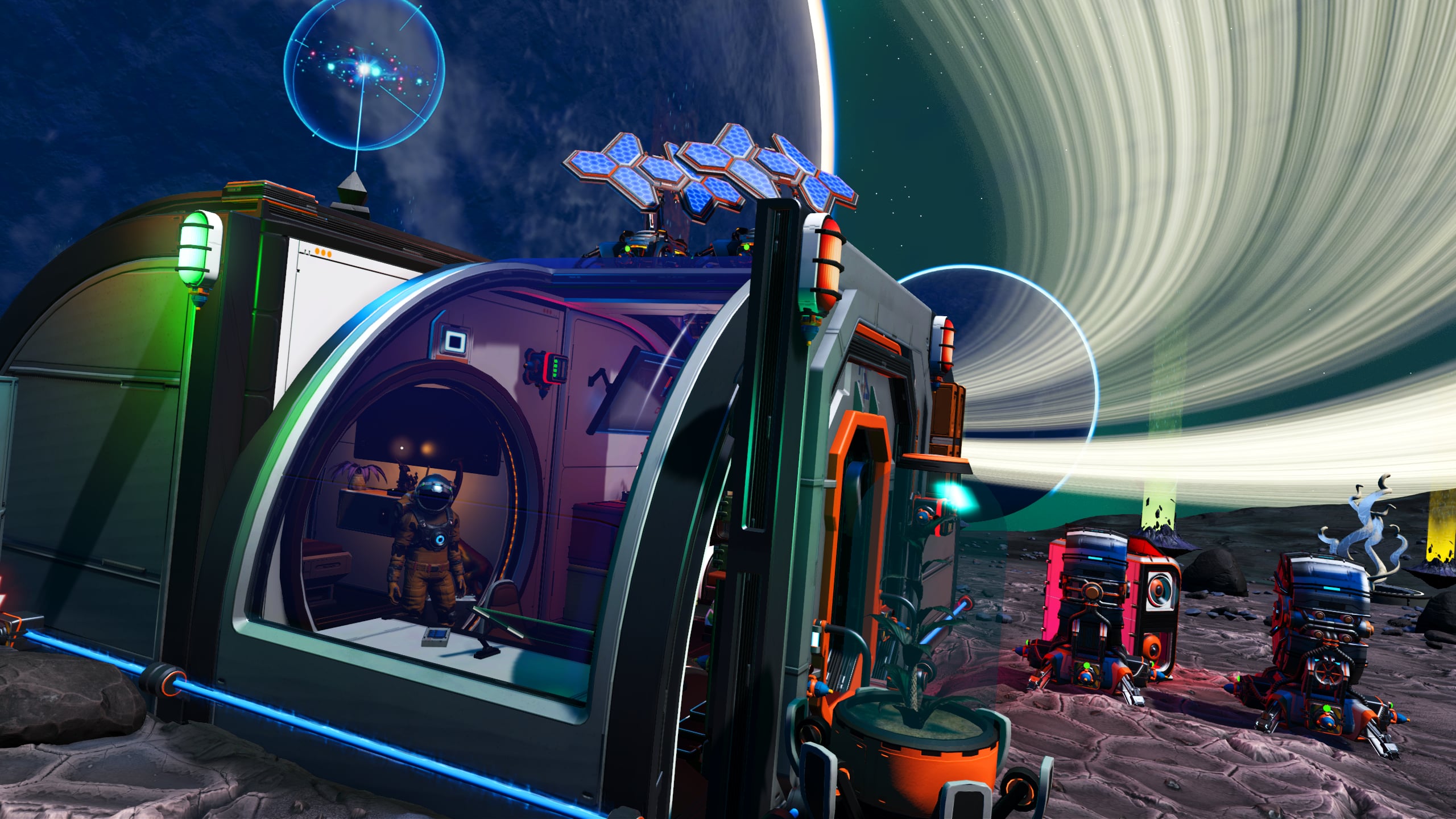 In the interest of space savings, the Nutrient Processor and various additional storage tanks and containers are located out of doors, but in close proximity to the base. A small patch of Curious Corn has been planted along the cliff to provide additional foodstocks.