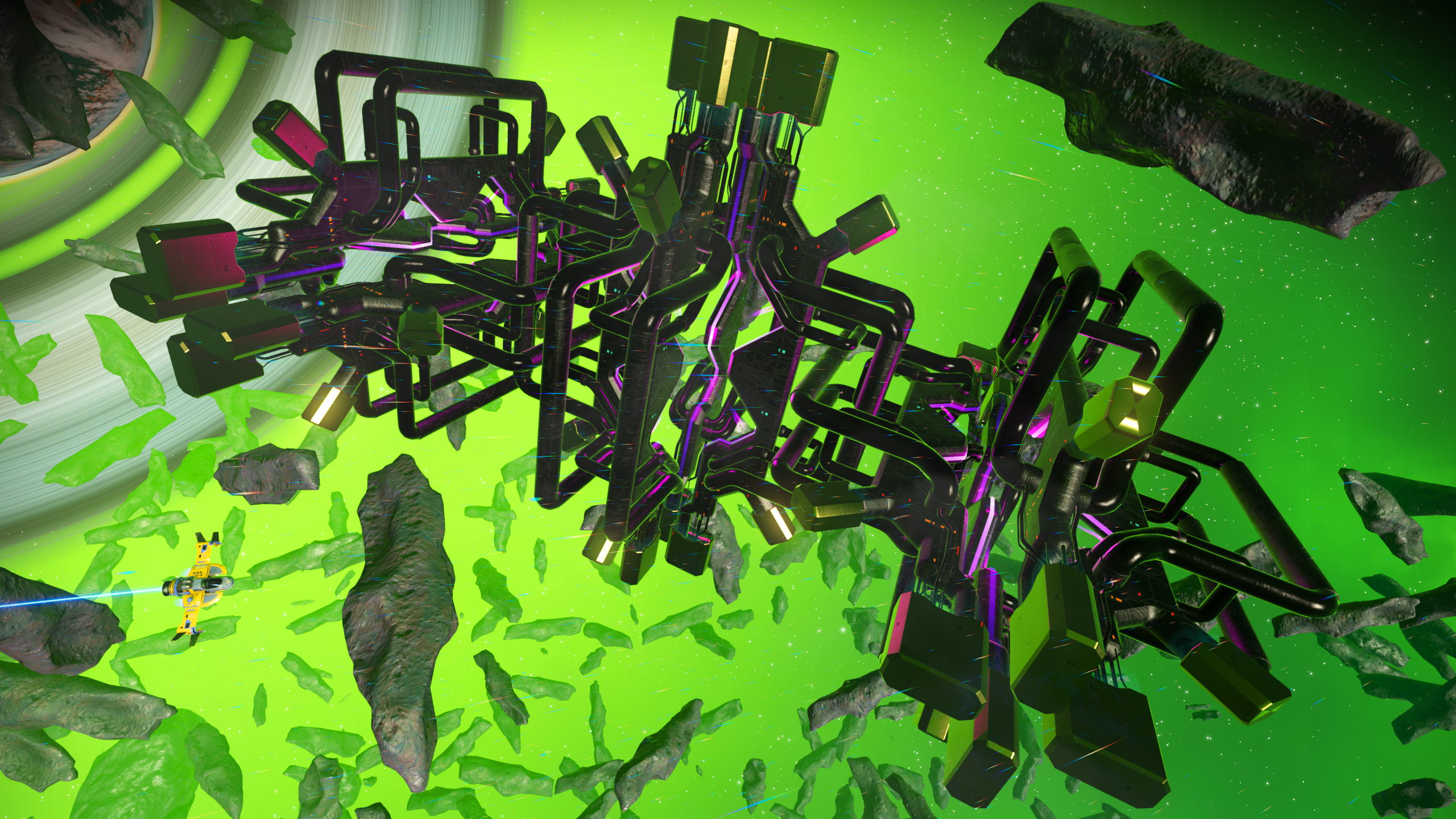 In February of 2020, Hello Games released the Living Ship update to No Man’s Sky which brought players the chance to own and pilot a new class of sentient starship, hatched from an egg and featuring unique organic technologies. Along with these procedurally generated ships, the update added the possibility of new, anomalous encounters with mysterious space objects and strange new lifeforms while pulsing through a star system. Some yielding rewards and some bringing danger, quite a variety of strange encounter scenarios were added to the game. (The Desolation update, released a few months later, introduced the Anomaly Detector which allows the summoning of these near-space anomalies.)