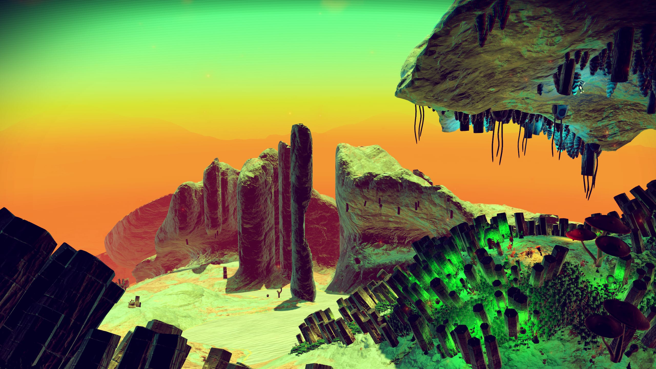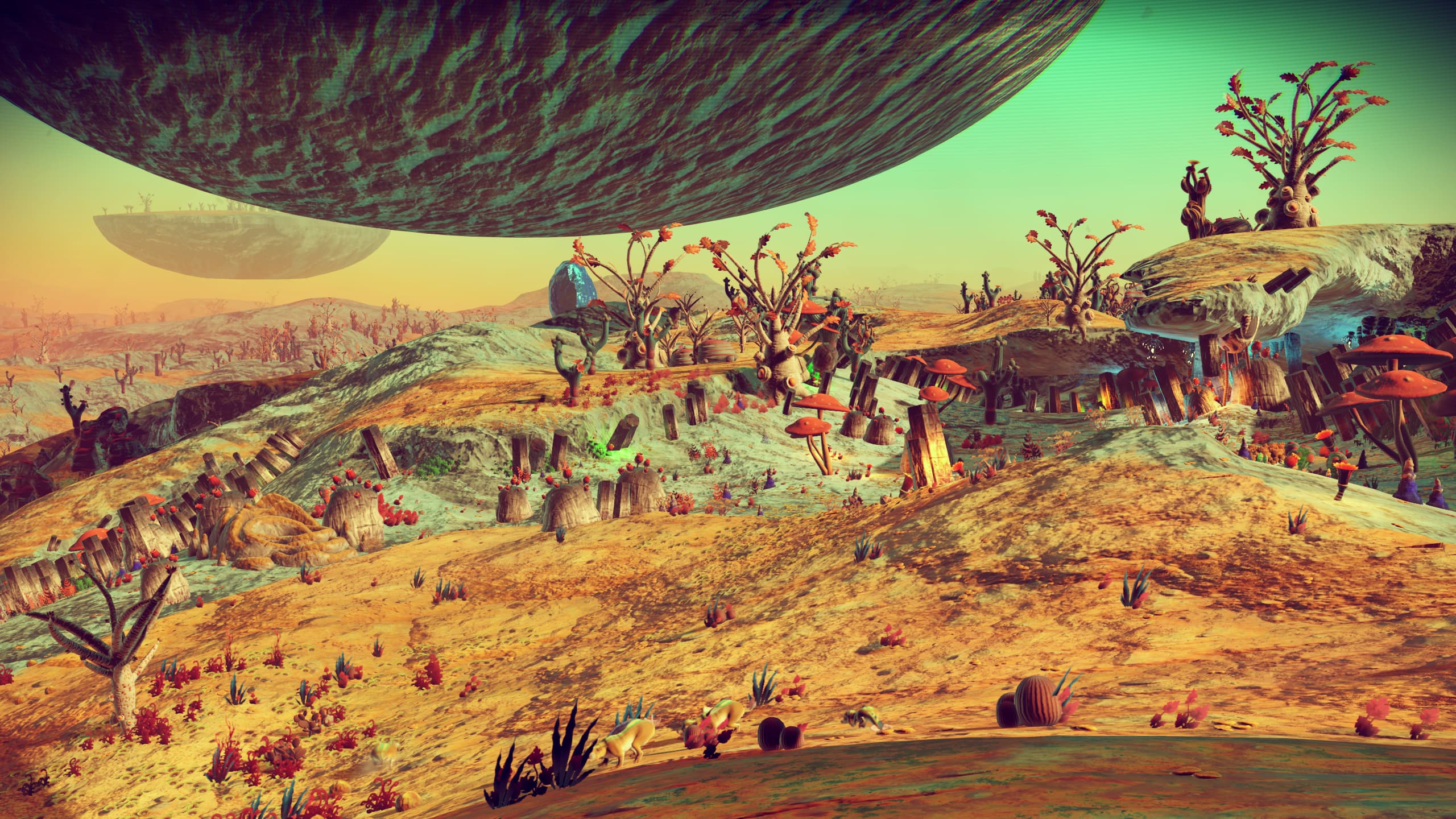 The fundamental thing is that we have this universe that we built, like, four years ago and we released it and we said that thing of, “even we don’t know what’s out there.” But it was true to an extent, right? We didn’t know the kind of planets people were going to start up on and — and then actually that hasn’t been true for the last four years for us. We have a ever evolving game but that universe has been reasonably static, right? The same terrains and biomes and worlds out there to explore. We’ve kind-of calmed them down, actually. We’ve removed some of the craziness [in Atlas Rises and, to a much larger extent, NEXT]…